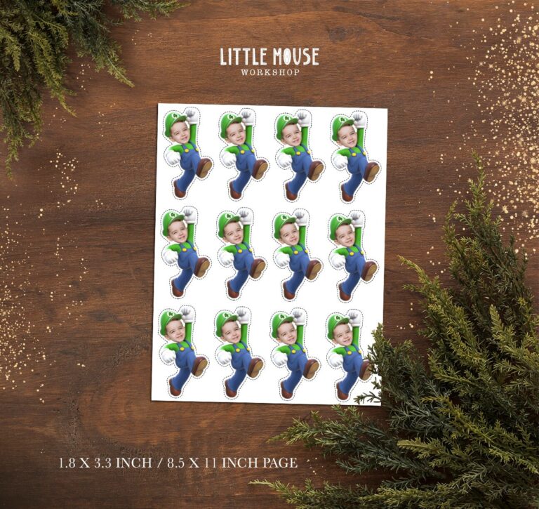 Level up your child's next celebration with these expertly crafted custom face cupcake toppers featuring the iconic green-clad plumber in a dynamic jumping pose. Specifically designed for video game enthusiasts and 'Player 2' themed events, these decorations allow you to seamlessly integrate your toddler's smiling face under the classic green cap, which can be personalized with their age, such as the number four shown here. These high-quality digital printables provide a professional finish to your dessert table, transforming ordinary cupcakes into memorable, high-energy party highlights. Ideal for parents seeking unique, DIY party decor that captures the nostalgia of classic arcade adventures while celebrating their little gamer's special milestone.