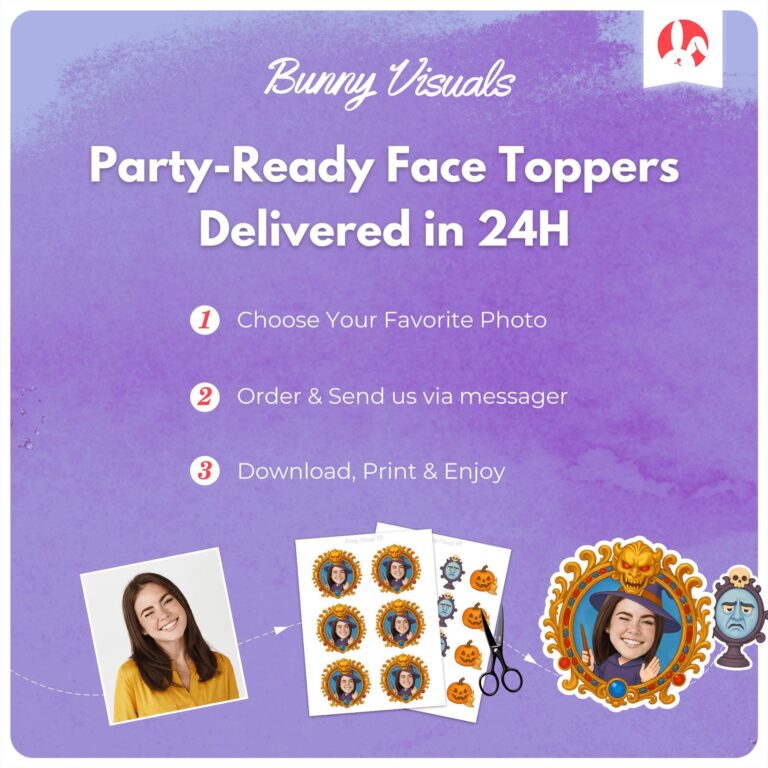 Elevate your villainous celebration with these exquisite Magic Mirror cupcake toppers, designed to crown the "fairest of them all" at your next event. The design features a lavish, ornate golden frame detailed with red and blue gem accents and a spooky theatrical mask at the apex, perfectly capturing the essence of the classic Evil Queen context. Ideal for teenagers and adults hosting a Villains-themed birthday or a sophisticated Halloween soirée, these custom face toppers put your guest of honor directly inside the enchanted mirror. For the best visual impact, precision-cut around the scrolling edges after printing on heavy white cardstock; this ensures the toppers remain upright and durable in frosting. Whether used for cupcakes or savory appetizer picks, these digital downloads provide a high-quality, personalized touch that standard party store decorations cannot match.