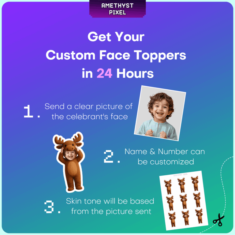 Bring the outdoors to your dessert table with these adorable custom face moose cupcake toppers, perfect for adding a personalized touch to any woodland or camping-themed celebration. The design features a cozy, plush-textured brown moose costume body where the guest of honor’s face is digitally inserted, creating a fun and heartwarming visual. Best suited for toddlers and young children celebrating a "Wild One" or forest-themed birthday, these printable decorations are designed to make your little one the star of the show. Simply download the digital file, print on quality paper, and assemble at home for a professional-looking DIY finish.