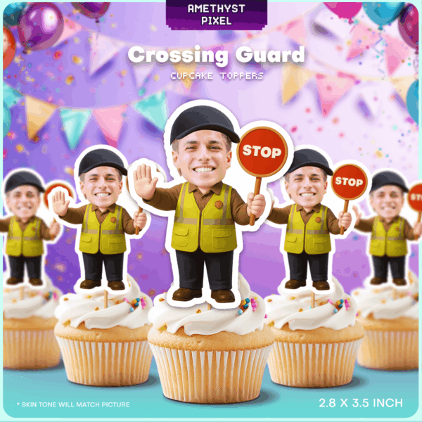 Custom Face Crossing Guard Cupcake Toppers - Printable School Safety Party Decor