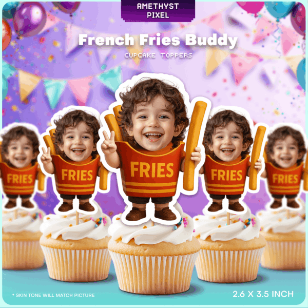 Custom Photo French Fries Cupcake Toppers – Printable Fast Food Theme Birthday Decoration