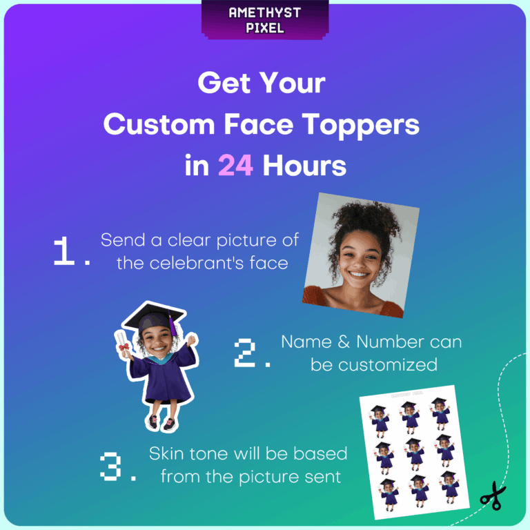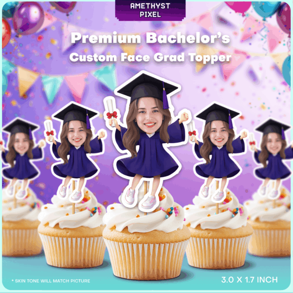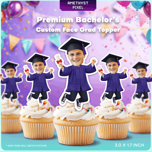 Custom Face NYU Master's Graduation Cupcake Toppers – Printable Purple Gown Decor For Boys