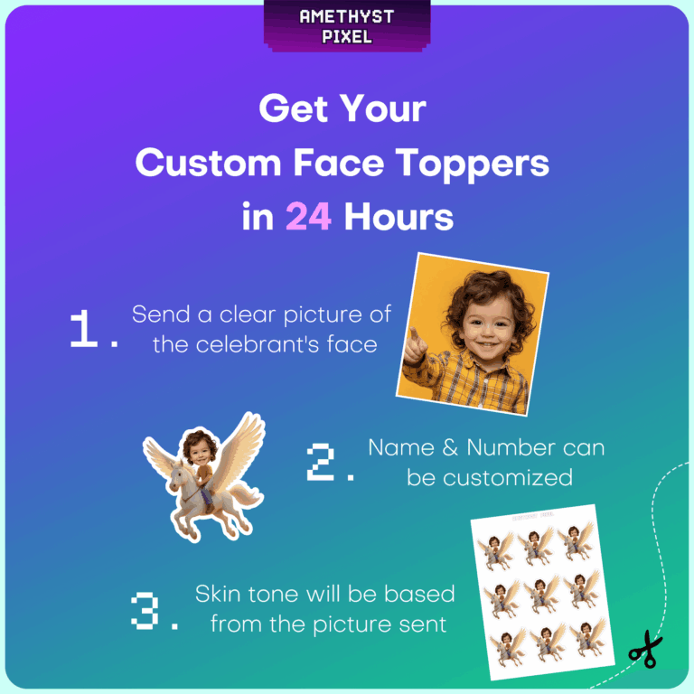Custom Face Pegasus Cupcake Toppers for Magical Fantasy Birthday Parties