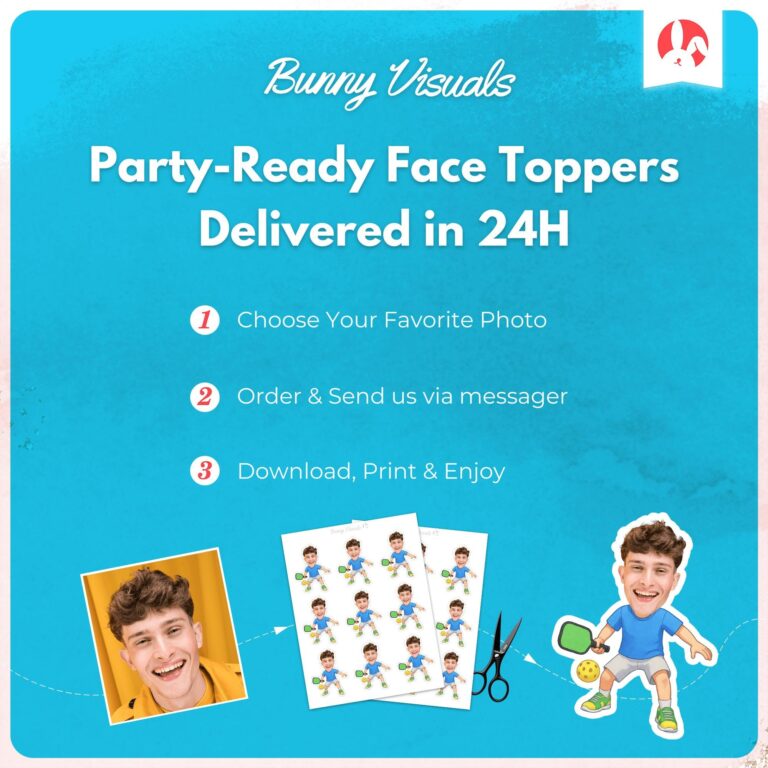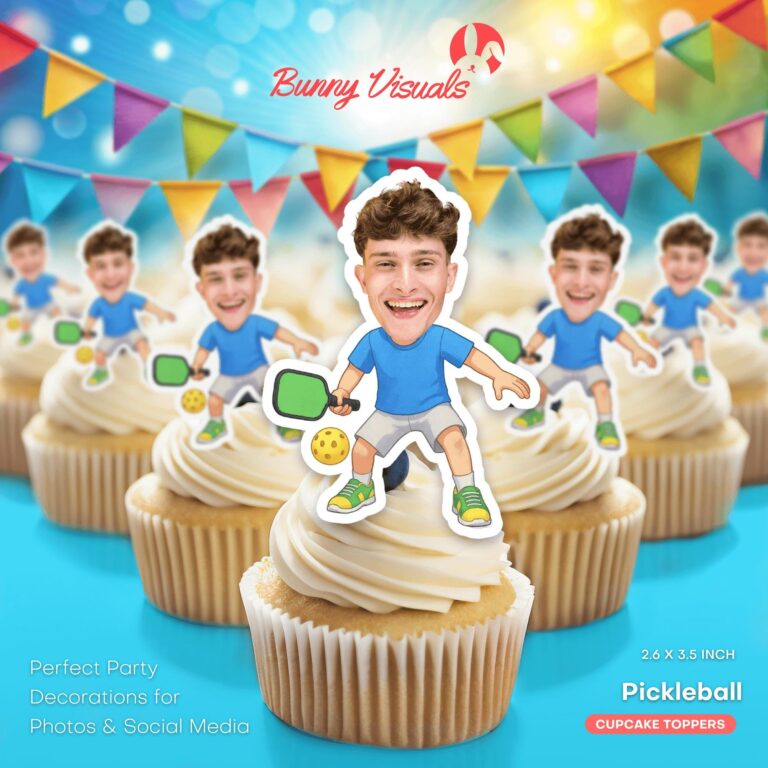 Custom Face Pickleball Player Cupcake Toppers for Sports Parties