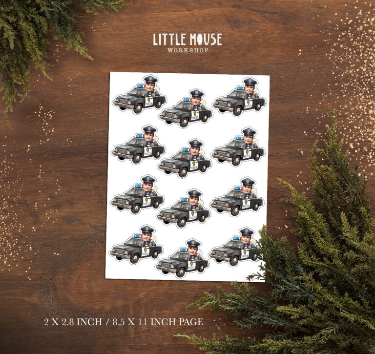 Custom Face Police Officer Cupcake Toppers – Personalized Patrol Car Birthday Decorations