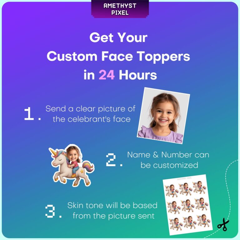 Custom Face Riding Unicorn Cupcake Toppers for Magical Girls Birthday Parties