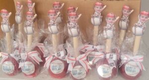 - Adding a personalized touch to a concession stand-themed treat table
