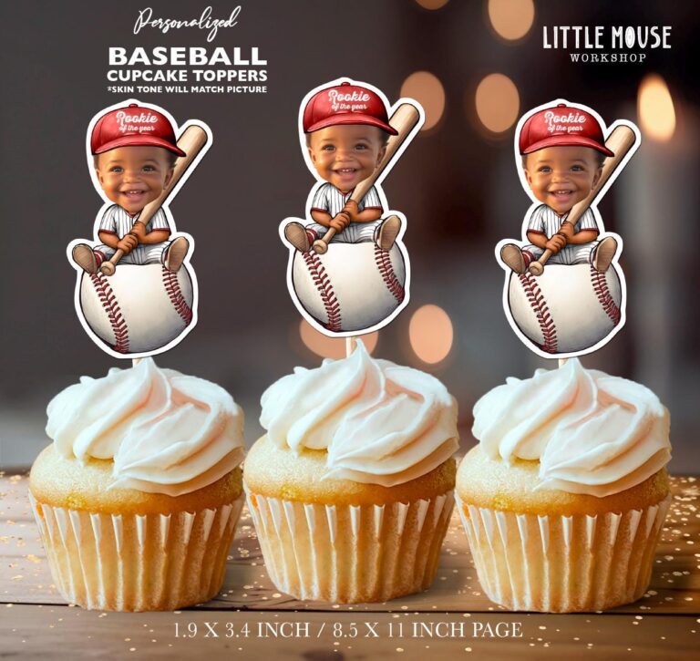 Custom Face Rookie of the Year Baseball Cupcake Toppers for 1st Birthdays review - Shereka