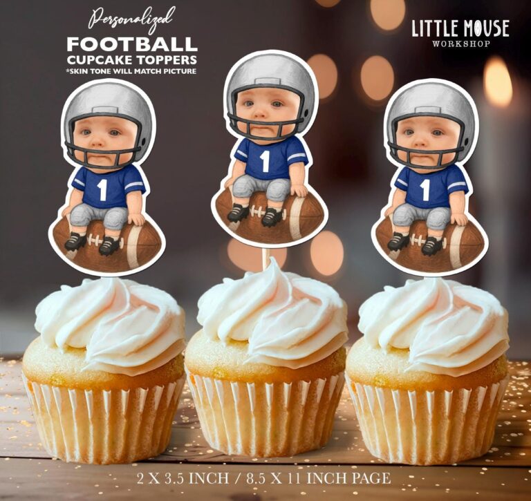 Personalized Football Player Face Cupcake Toppers – Rookie of the Year 1st Birthday Decor