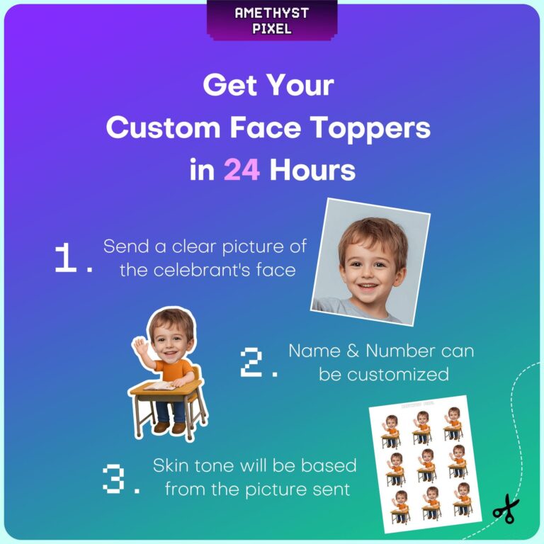 Celebrate academic milestones and enthusiasm for learning with these expertly designed custom face cupcake toppers, featuring a young student raising his hand at a school desk. Perfectly suited for toddlers and young children, this detailed illustration captures a boy in an orange t-shirt and blue jeans, sitting attentively with an open book, ready to participate in class. Ideal for back-to-school gatherings, kindergarten graduations, or educational themed parties, these decorations add a layer of personalization and charm to your dessert table. The high-quality design ensures that the visual elements, from the wood grain of the desk to the eager posture of the child, print crisply to create a professional look. By integrating a photo of your own child, you create a trustworthy, heartwarming centerpiece that celebrates their individual school journey.