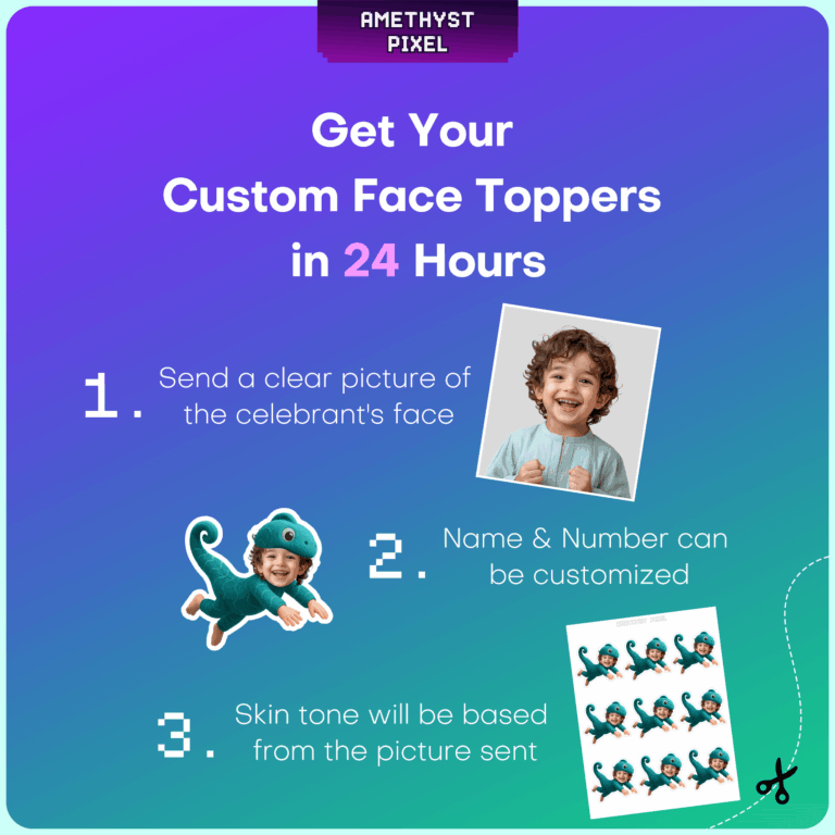 - Best printed on bright white cardstock for sturdy, vibrant toppers