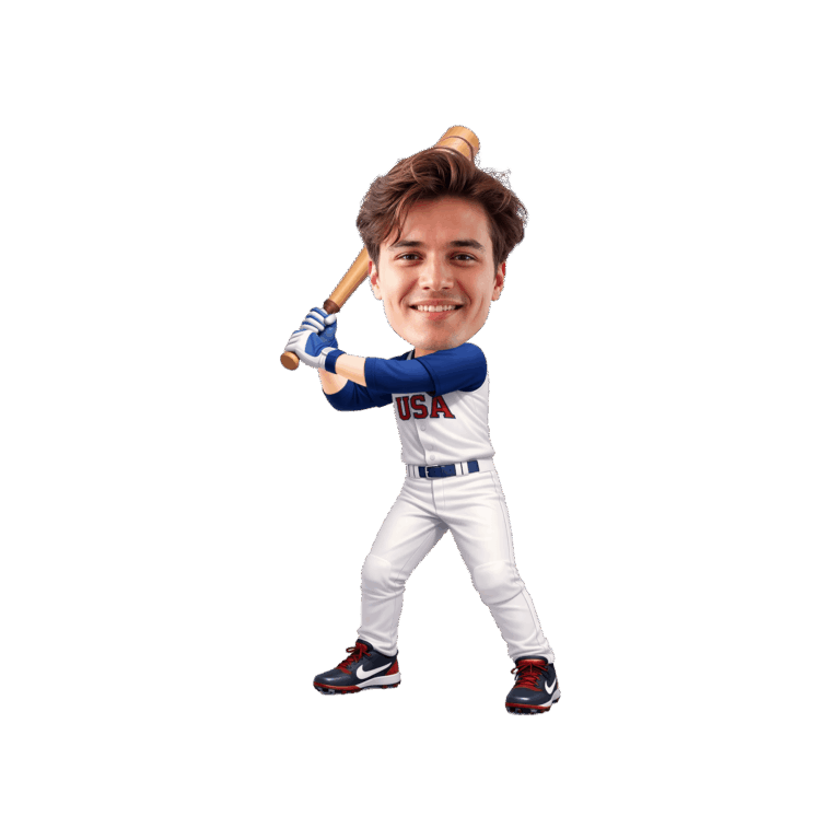 Step up to the plate and celebrate your MVP with these custom USA baseball player cupcake toppers. Designed for sports enthusiasts of all ages—from teens to adults—this printable decoration features a classic white uniform with bold "USA" lettering, blue sleeves, cleats, and a ready-to-swing wooden bat. Simply provide a high-resolution photo, and your guest of honor's face will be professionally integrated onto the cartoon body for a fun, personalized touch. Perfect for birthday parties, team celebrations, or patriotic events, this digital download puts you in control of the quantity and printing process. The design is optimized for clear, vibrant printing on standard home equipment, ensuring your dessert table looks like a major league success.