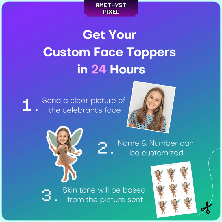 Custom Fairy Face Cupcake Toppers – Printable Enchanted Garden Birthday Décor