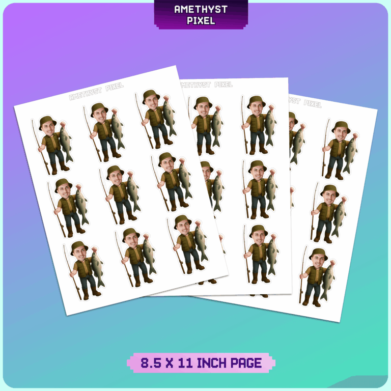 Reel in the fun at your next event with these personalized fisherman cupcake toppers, featuring the guest of honor's face on a detailed angler body. This digital design showcases a classic outdoor look complete with a fishing hat, utility vest, boots, and a prize catch in hand, making it perfect for anyone who loves spending time on the water. Ideal for celebrating a "The Big One" first birthday, a milestone adult birthday, or even a retirement party for an avid fisherman, these printables add a humorous and personal touch to your dessert spread. As an experienced designer, I ensure the neck skin tone is adjusted to blend naturally with your uploaded photo. Since this is a digital file, you get immediate access to print as many as you need from home, ensuring your party planning stays on schedule and budget-friendly.