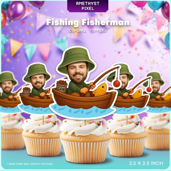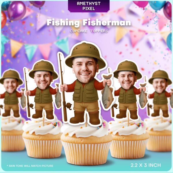 Custom Face Fisherman Cupcake Toppers for Angler Birthday Parties