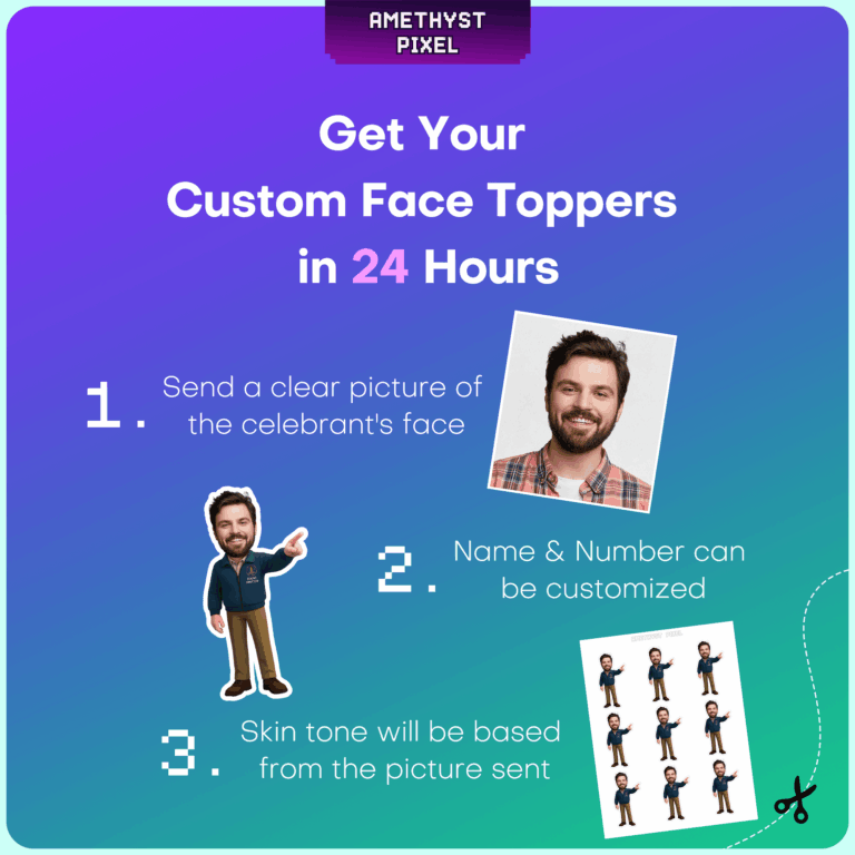 Take command of your celebration's dessert table with these personalized Mission Control Flight Director cupcake toppers. Perfect for space enthusiasts of any age, from a toddler’s 'First Trip Around the Sun' to an adult science-themed bash, this design features a detailed illustration of a commander in a blue flight jacket pointing the way forward. We digitally integrate your provided photo onto the flight director's body, carefully adjusting skin tones to ensure a natural and professional look. This IS a digital download product, meaning you receive a high-resolution file to print as many times as needed. The result is a fun, custom focal point for your cupcakes that looks professionally made but is easily assembled at home using standard craft supplies.
