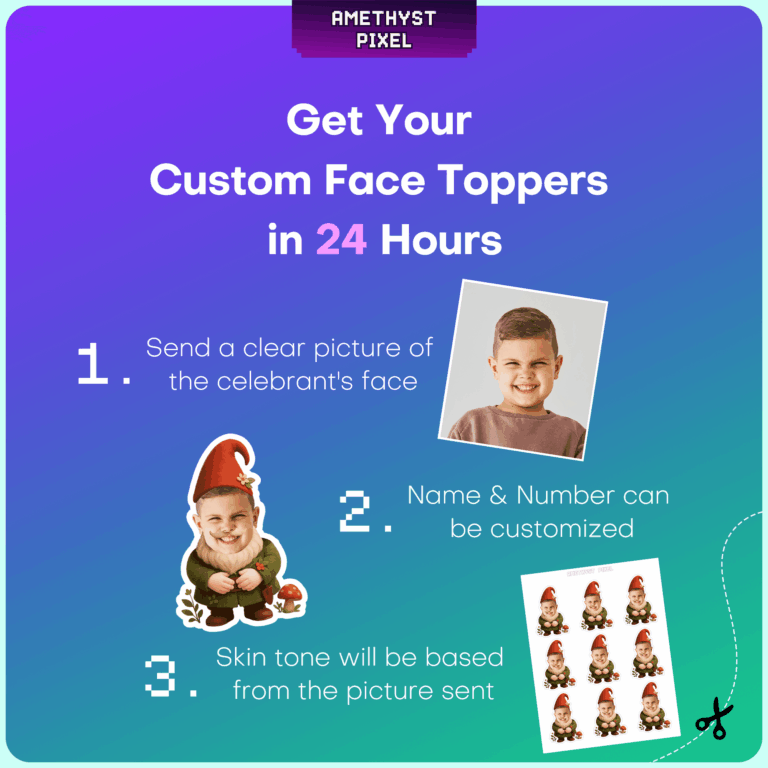 Custom Gnome Face Cupcake Toppers – Printable Garden Party Decorations