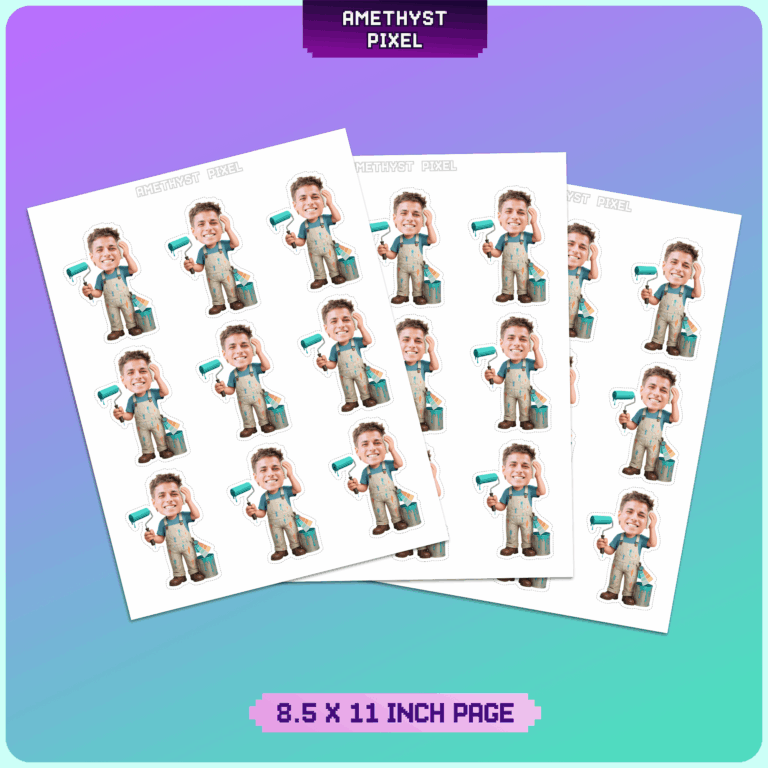 Celebrate the hard work of your favorite handyman, contractor, or DIY enthusiast with these personalized house painter cupcake toppers. Designed for adults celebrating a business milestone or a successful home renovation, this digital download features a charming cartoon body wearing paint-splattered overalls, holding a roller, and carrying color swatches. The design captures the essence of the trade with fun details like a paint can and a sweat rag, making it a humorous and thoughtful addition to any construction-themed event. Simply upload a clear photo of the guest of honor, and receive a high-resolution file ready to print at home. These toppers add a custom touch that highlights the personality of the skilled tradesperson in your life.