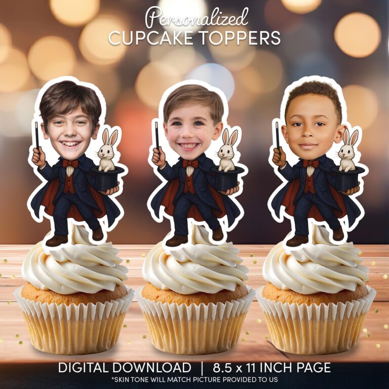 Custom Magician Face Cupcake Toppers – Printable Magic Show Birthday Party Decor