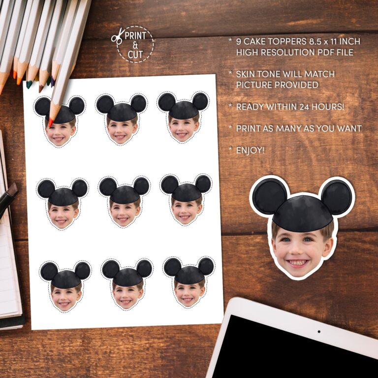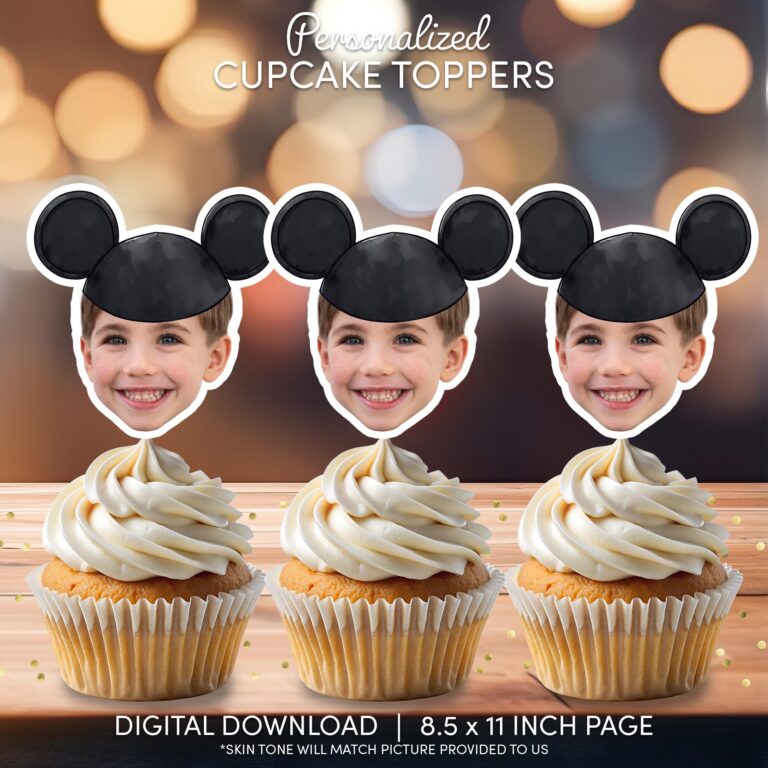 Custom Mouse Ears Face Photo Cupcake Toppers - Printable Party Decor