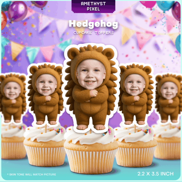 Custom Hedgehog Face Cupcake Toppers for Woodland Themed Birthday Parties