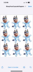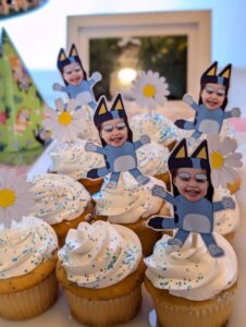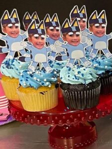 Custom Photo Bluey Themed Cupcake Toppers for Children's Birthday Celebrations