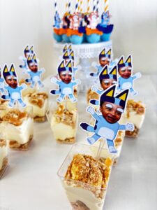 - Adorn frosted cupcakes or muffins to create a cohesive Blue Heeler dessert display.