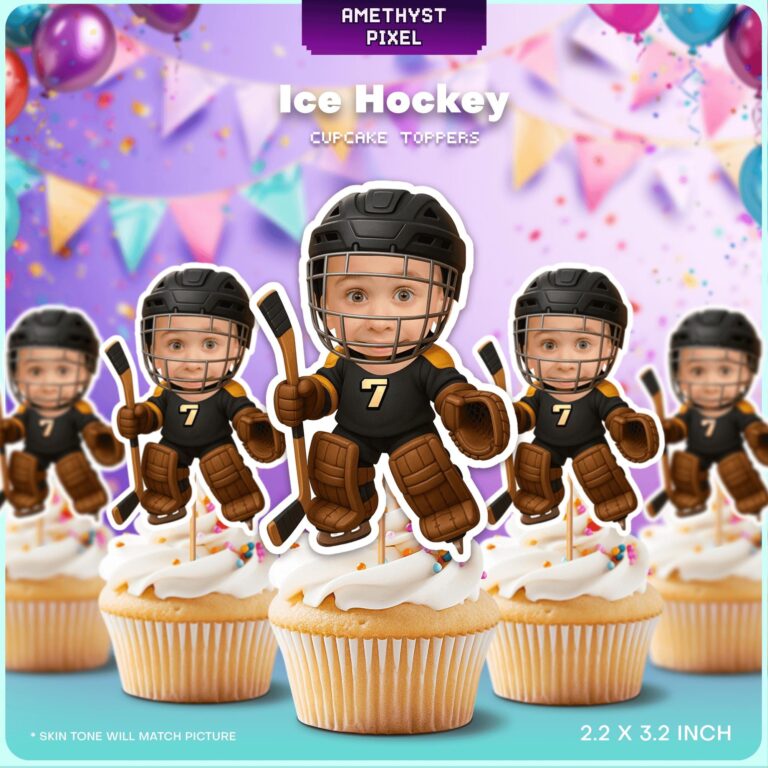 Personalized Ice Hockey Player Face Cupcake Toppers β Printable Sports Party Decor