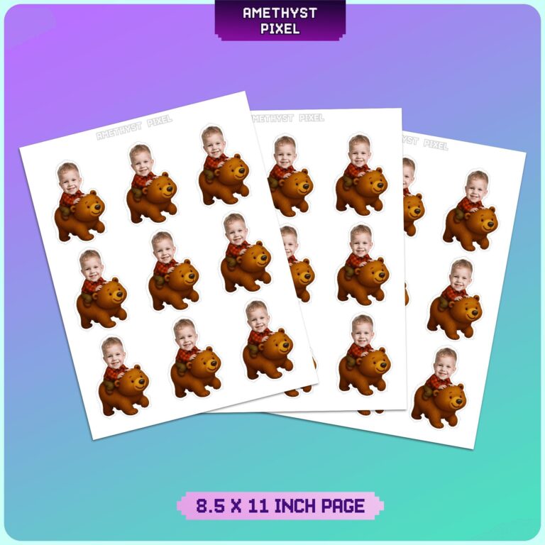 Bring the cozy charm of the great outdoors to your dessert spread with these delightful custom face cupcake toppers, featuring your toddler riding atop a friendly brown bear. Perfectly suited for a rustic birthday celebration or a winter-themed gathering, each topper depicts your child dressed in a classic red and black buffalo plaid flannel shirt and brown trousers, capturing the essence of a little lumberjack. The design measures approximately 2.3 by 3.4 inches, ensuring they stand out prominently without overwhelming standard-sized cupcakes. Whether you are planning a "Wild One" first birthday or a "Beary" special baby shower, these personalized decorations add a heartwarming and humorous touch to your event. The detailed fur texture on the bear and the crisp plaid pattern create a high-quality, professional look that guests will adore.