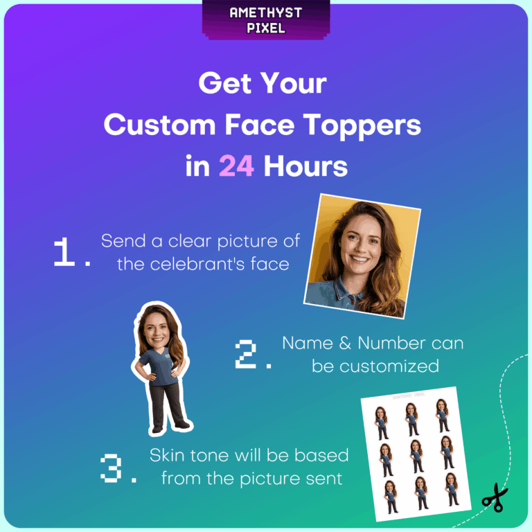 Celebrate the hard-working physical therapist in your life with these custom photo cupcake toppers. Featuring a confident cartoon body dressed in professional blue scrubs and comfortable work pants, this printable party decor is the perfect way to honor a DPT graduation, retirement, or career milestone. Simply provide a clear photo, and we will create a high-resolution digital file that captures the graduate's personality. These fun, personalized cutouts are best suited for adults celebrating professional achievements but also work well for office parties or medical-themed birthdays. For the best visual impact, we recommend printing on bright white cardstock to make the scrub colors pop and ensure the topper stands upright on your desserts.