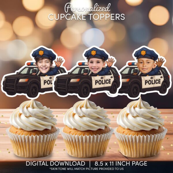 Custom Police Officer Face Cupcake Toppers - Personalized Photo Birthday Decor for Boys
