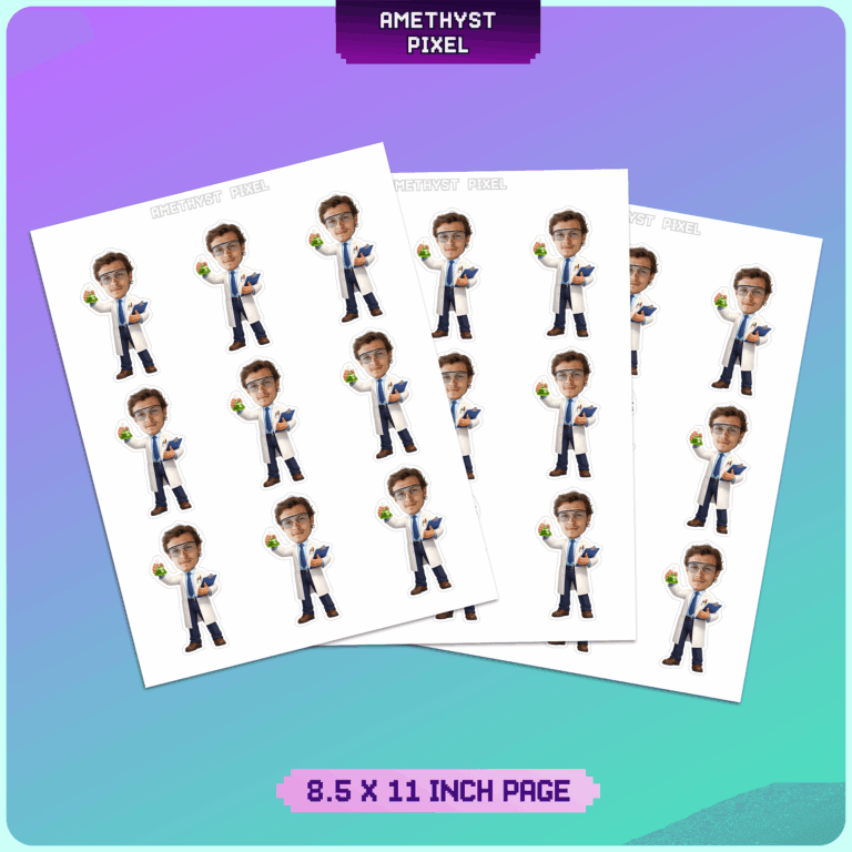 Transform your guest of honor into a brilliant chemist with these personalized scientist cupcake toppers. The design features a classic white lab coat, sleek safety goggles, a blue tie, and a bubbling green beaker, making it the perfect addition to a Mad Scientist theme or a laboratory celebration. Appropriate for a wide range of ages, this printable decor works wonderfully for children's educational birthday parties, STEM events, or even adult celebrations like PhD graduations or biology teacher retirements. You will receive a high-resolution digital file created from your uploaded photo, ready for you to print, cut, and assemble at home for a truly unique dessert display.