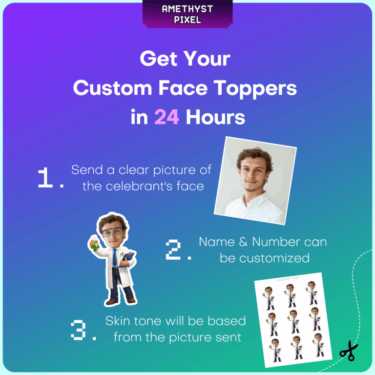Custom Scientist Face Cupcake Toppers – Printable Chemistry Lab Party Decoration