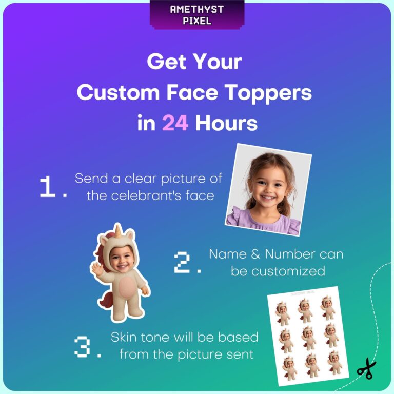 Whimsical Unicorn Custom Face Cupcake Toppers for Magical Birthday Parties