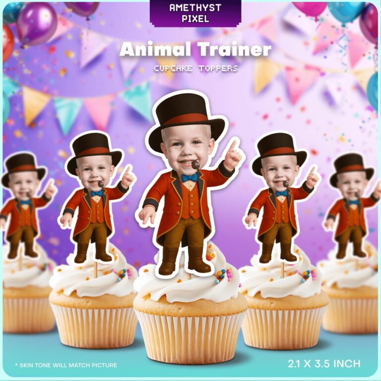 Personalized Animal Trainer Face Cupcake Toppers for Circus Themed Birthday Parties