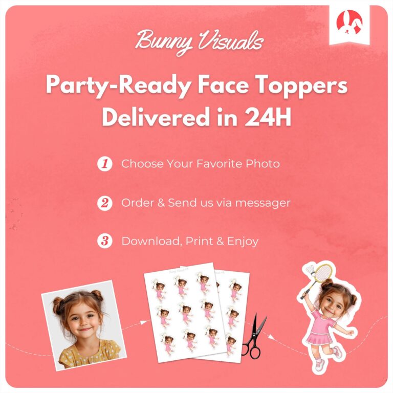 Transform your dessert table into a court-side celebration with these professionally designed custom face cupcake toppers, perfect for young girls passionate about badminton. The illustration depicts an energetic character in a delightful pink sports uniform and sneakers, leaping joyfully to strike a shuttlecock with her golden racket. By integrating your daughter's photo onto this dynamic figure, you create a unique and memorable party accessory that highlights her love for the game. Ideal for sports-themed birthdays or team gatherings, these toppers serve as excellent conversation starters and photo props. The high-resolution design ensures that every detail, from the racket strings to the pleats in the skirt, prints beautifully for a polished, expert-level DIY party presentation.