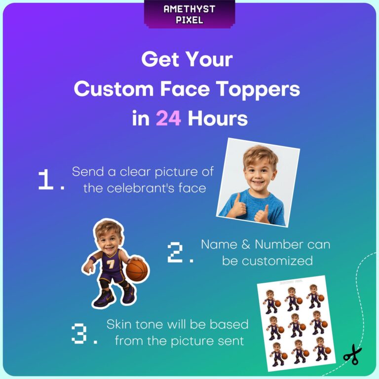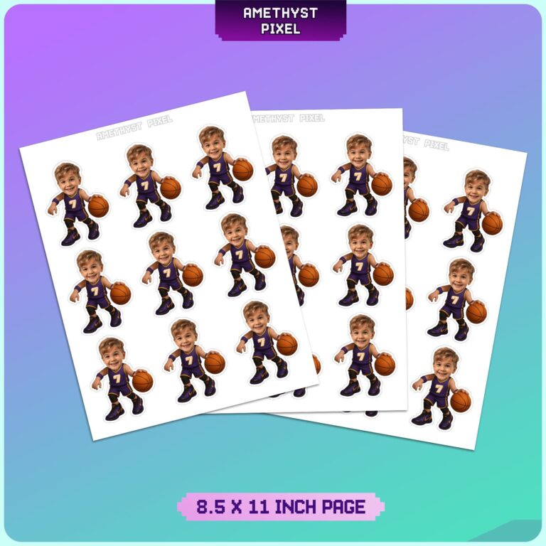 Elevate your child's sports-themed birthday celebration with these dynamic, personalized basketball cupcake toppers designed for toddlers and young athletes. Featuring a high-energy illustration of a little player in a purple and gold number 7 jersey dribbling a basketball, these printable decorations turn the birthday star into the MVP of the party. By integrating your provided photo onto the character's body, we create a hilarious and heartwarming centerpiece for your dessert table. Perfect for game day parties or sports birthdays, these digital files allow you to print unlimited high-resolution copies at home. The design captures the excitement of the game with vibrant colors and professional detailing, ensuring your DIY party styling looks expertly crafted and trustworthy.
