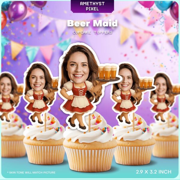Custom Photo Face Beer Maid Cupcake Toppers for Oktoberfest & Adult Parties