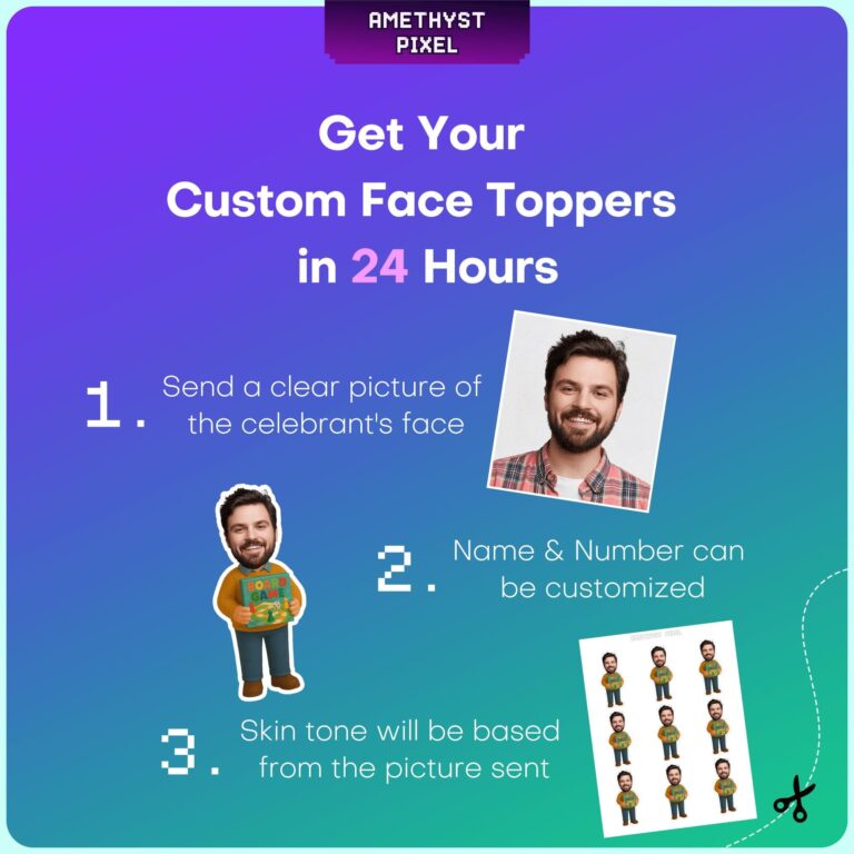 Personalized Board Game Designer Cupcake Toppers Featuring Custom Face