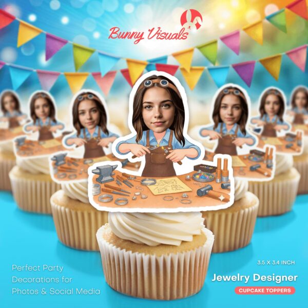 Personalized Custom Face Jewelry Designer Cupcake Toppers for Artisans
