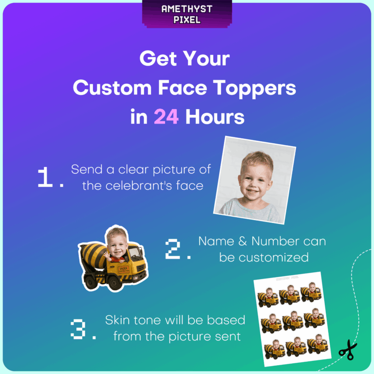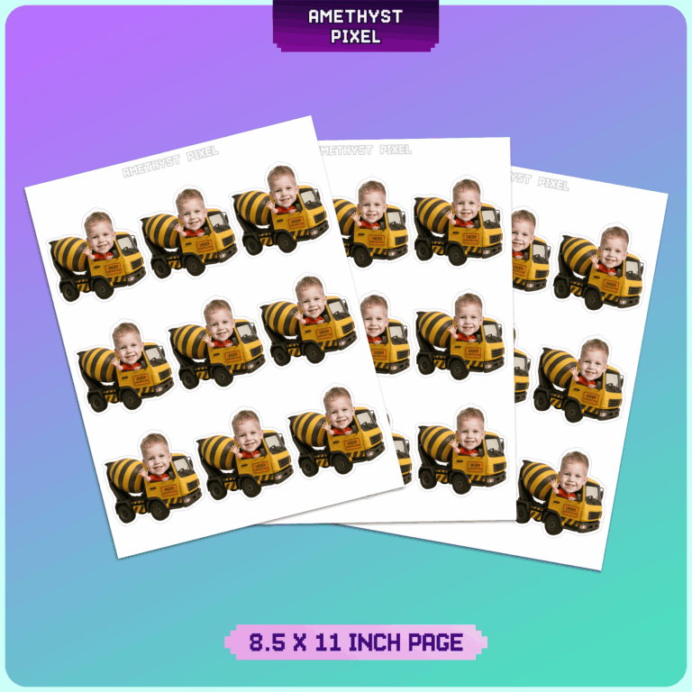 Make your little one the foreman of their own birthday bash with these custom cement mixer cupcake toppers. Designed explicitly for toddlers and preschoolers who are obsessed with big trucks and active building sites, this printable decoration features a classic yellow cement truck with bold black drum stripes. We professionally crop your child's face into the driverās seat, creating a fun effect where they appear to be steering the heavy machinery while waving to guests. The "Under Construction" signage on the door adds an authentic touch to the theme. Since this is a digital download, you receive a crisp, high-resolution file that allows for vibrant printing on cardstock, ensuring the trucks stand tall and sturdy on your desserts.