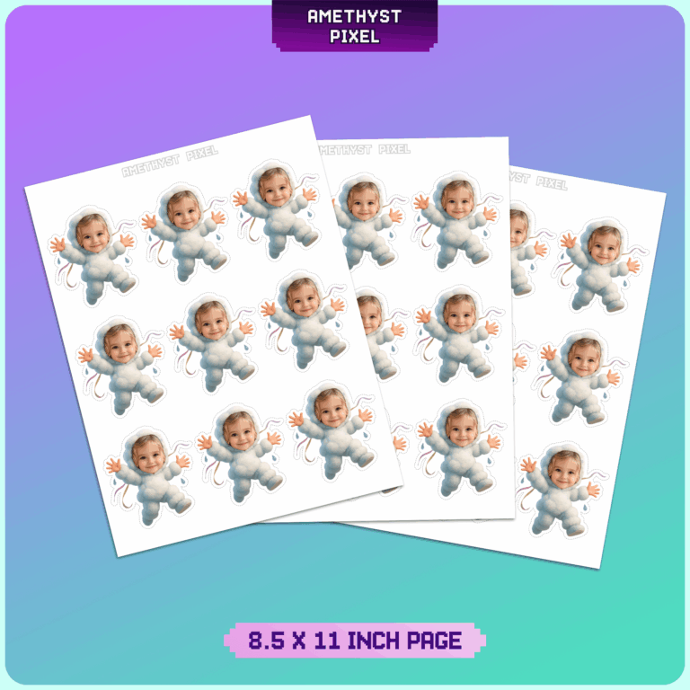 Create a dreamy and whimsical atmosphere for your next celebration with these custom face Cloud Buddy cupcake toppers. Featuring an adorable, fluffy cloud suit design in soft whites and blues, accented with delicate raindrops and flowing ribbons, this printable party decoration turns your child's photo into the highlight of the dessert table. Perfect for a first birthday, 'On Cloud 9' theme, or a welcoming baby shower, this digital download allows you to print high-quality decor right from home. The design includes a clear white offset border to make cutting simple and precise, ensuring your DIY toppers look professionally made when assembled on cardstock.