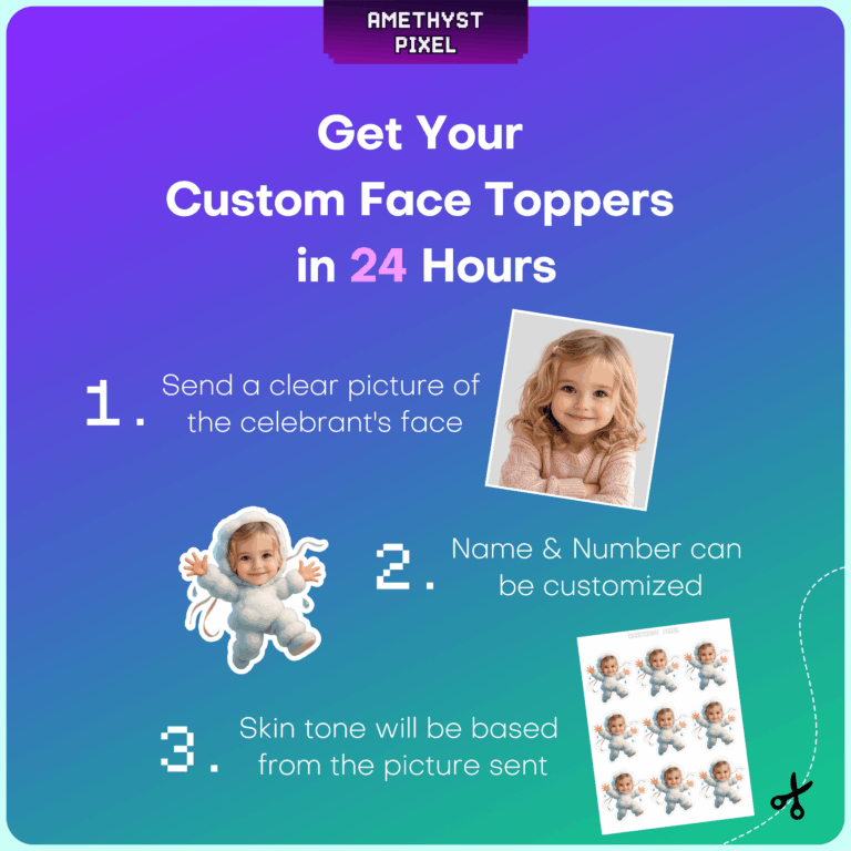 Personalized Cloud Buddy Cupcake Toppers with Custom Face for Birthday and Baby Shower