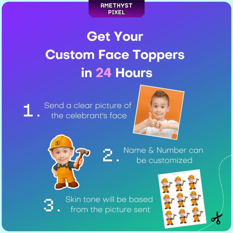 Personalized Construction Worker Custom Face Cupcake Toppers for Kids Birthday Parties