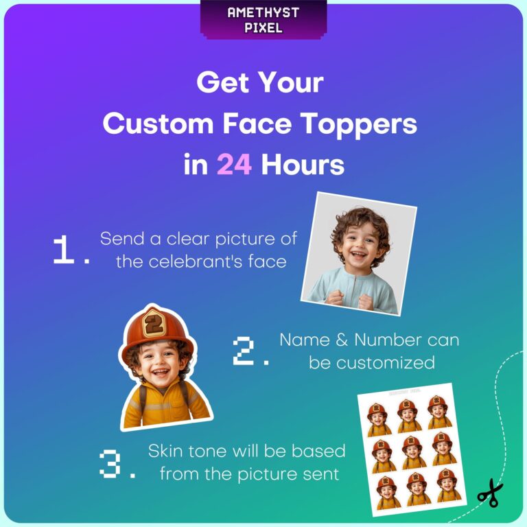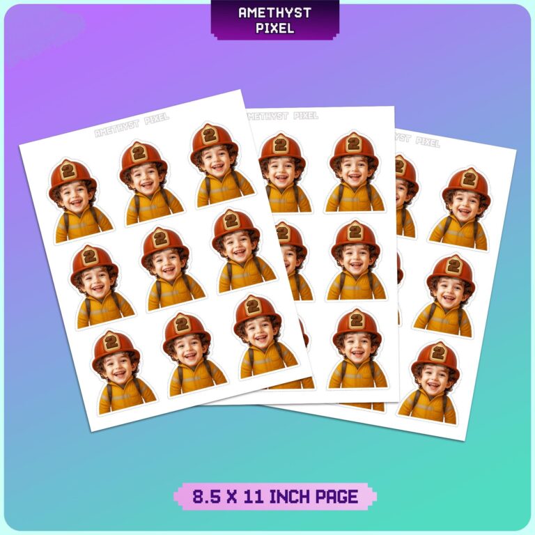 Ignite the excitement at your toddler’s second birthday with these adorable custom face firefighter cupcake toppers. Specifically designed for a "Sound the Alarm" or fire rescue theme, this decoration features a charming illustration of a toddler in a yellow turnout coat and a red helmet displaying the number "2". As a parent planning a milestone event, you want decor that stands out; these personalized photo toppers allow you to showcase the birthday boy as the hero of the day. They are delivered as high-resolution digital files, ensuring you get crisp, vibrant colors when printing at home or a local shop. Beyond just cupcakes, these versatile cutouts work perfectly on donut stacks or savory party snacks, offering a cohesive look for your fire truck celebration while saving you time and money on shipping.
