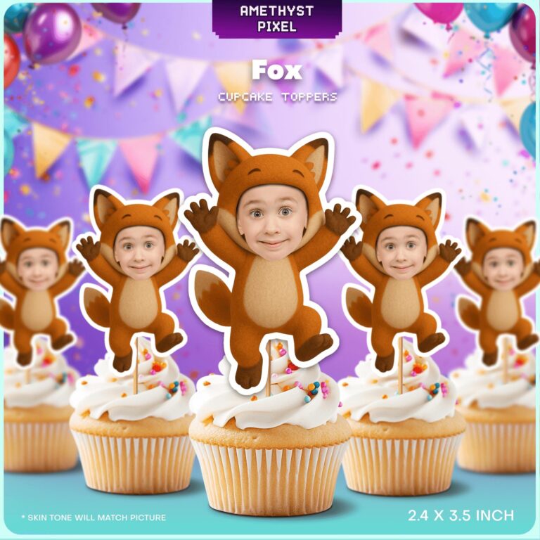 Personalized Custom Face Fox Cupcake Toppers for Woodland Themed Birthday Parties