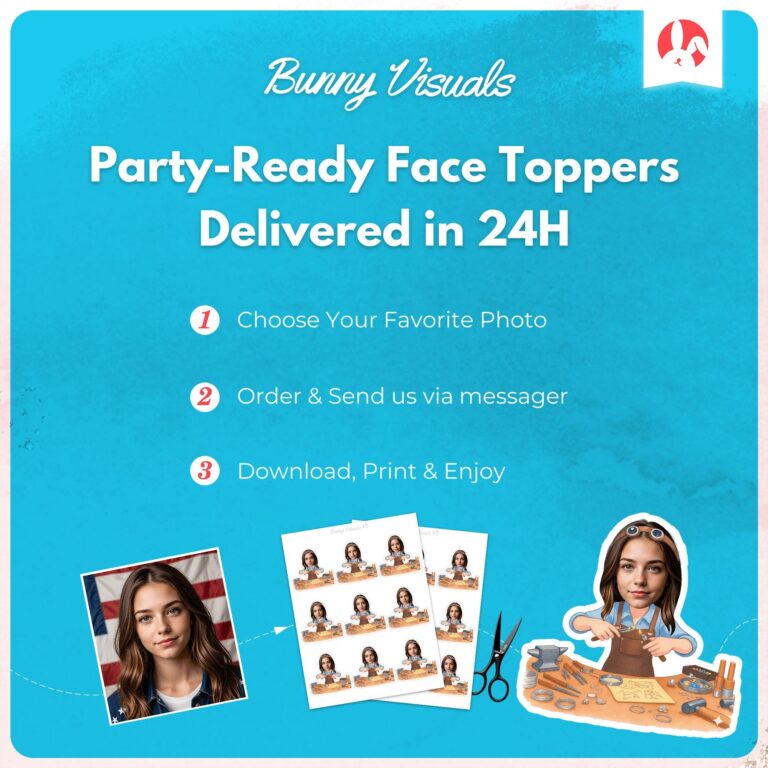 Celebrate the precision and artistry of the goldsmith in your life with these highly detailed jewelry designer cupcake toppers. Designed for creative teens, aspiring gemologists, and professional adult artisans, this decoration captures the essence of the craft. The illustration features your custom photo superimposed onto a skilled jeweler sitting at a cluttered workbench, complete with a soldering torch, miniature anvil, pliers, and loose gemstones waiting to be set. Dressed in a practical brown apron with safety goggles perched on her head, the character embodies focus and creativity. Ideally sized at roughly 3.5 x 3.4 inches, these printable toppers make an excellent addition to design school graduations, studio launches, or birthdays for the crafting enthusiast who loves working with their hands.