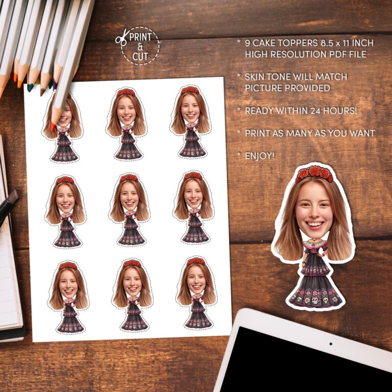 Personalized Day of the Dead Cupcake Toppers – Custom Face Mexican Fiesta Decorations
