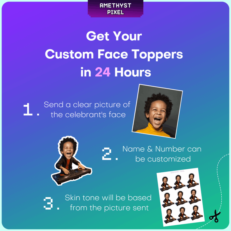 Turn up the volume at your next celebration with these custom face cupcake toppers that transform your birthday star into a world-class DJ. Perfect for energetic kids and music-loving teens, this printable design features a body enthusiastically mixing beats on a realistic set of turntables, customized with your submitted photo. As experts in digital party decor, we ensure the skin tone on the illustrated hands is adjusted to match your photo for a seamless, high-quality look. These toppers are intended as a digital download, allowing you to print as many as you need from the comfort of your home. They create an instant conversation piece for dance parties, disco themes, or any event where the guest of honor loves to drop the beat.
