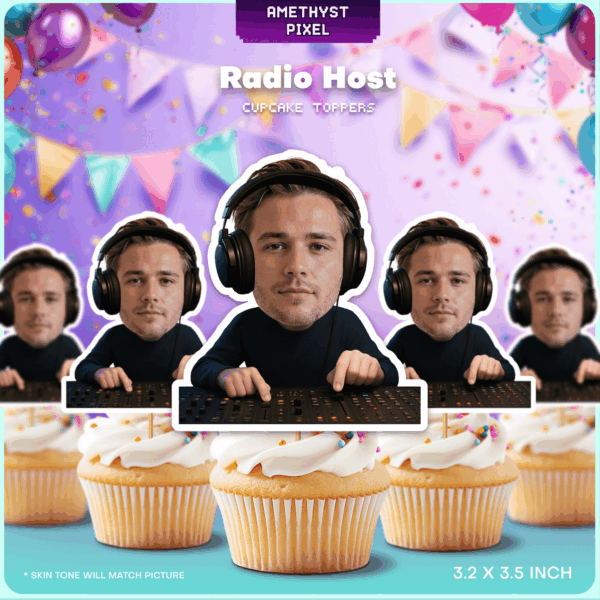 Custom Radio Host Face Cupcake Toppers β Printable Broadcast & DJ Party Decor